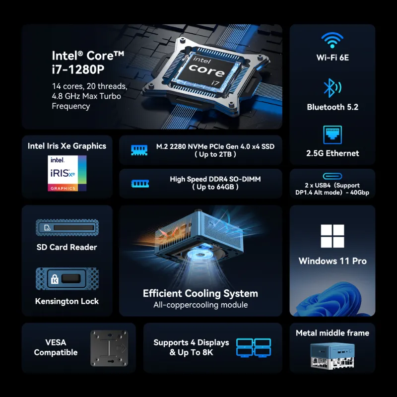 - A 200kg pressure-resistant metal frame—drop-proof, stackable, and bag-packed—this mini PC is durable enough to handle frequent moves and busy home offices.